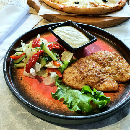 Стейк куриного филе с овощным гарниром и соусом Тар-тар